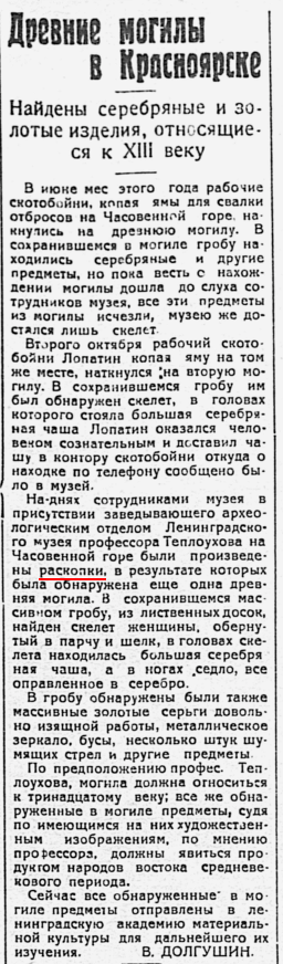 Шелковые ткани с вышивкой и золотыми нитями монгольского времени из погребения на Часовенной горе под Красноярском // ПОЛЕВЫЕ ИССЛЕДОВАНИЯ В ВЕРХНЕМ ПРИОБЬЕ, ПРИИРТЫШЬЕ И НА АЛТАЕ (АРХЕОЛОГИЯ, ЭТНОГРАФИЯ, УСТНАЯ ИСТОРИЯ И МУЗЕЕВЕДЕНИЕ). Барнаул. 2020. С. 30-40